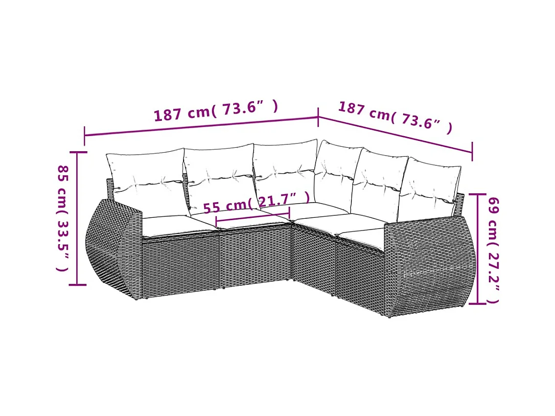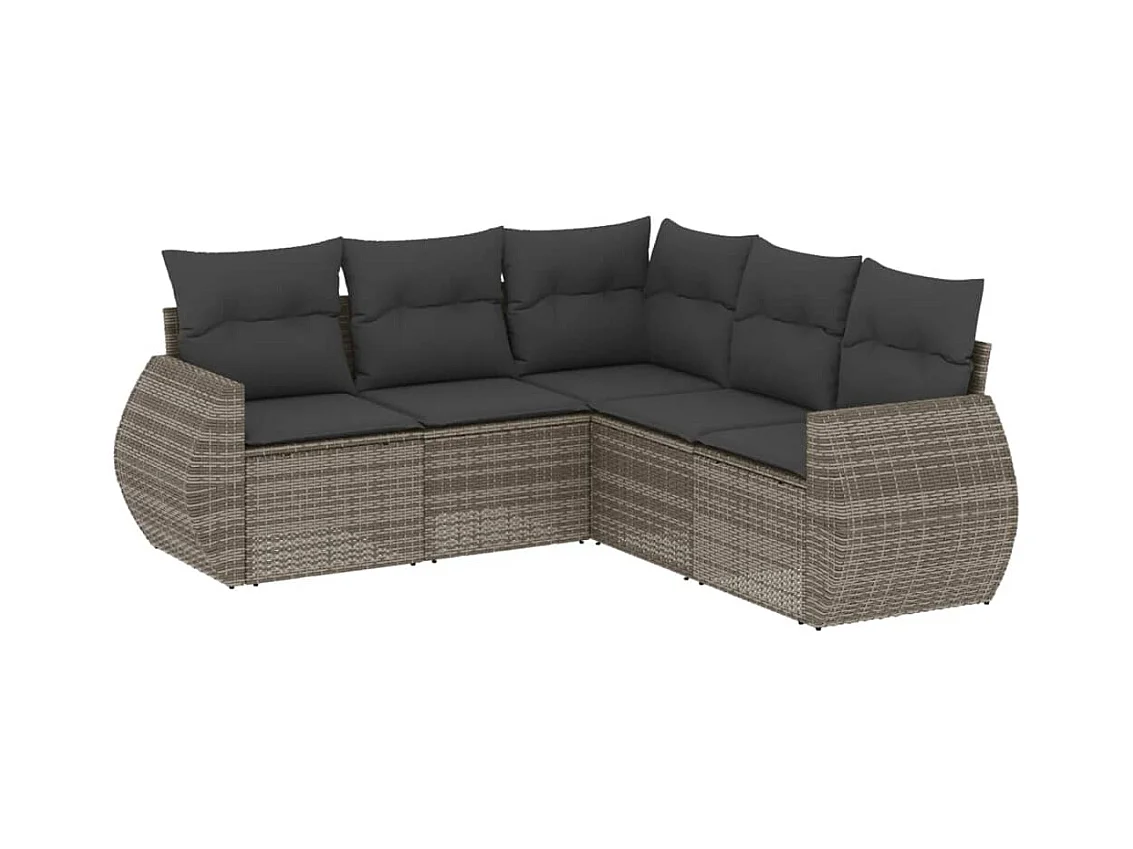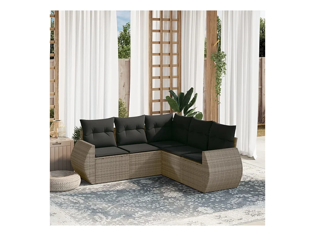Salon de jardin 5 pcs avec coussins gris résine tressée FR60753