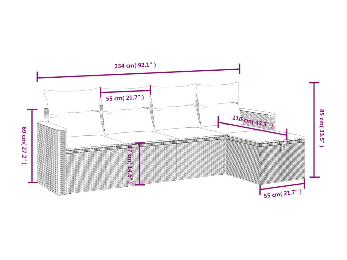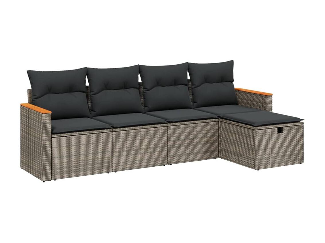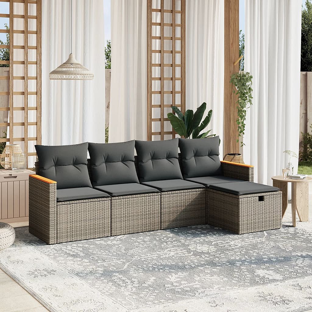 Salon de jardin 5 pcs avec coussins gris résine tressée FR69418