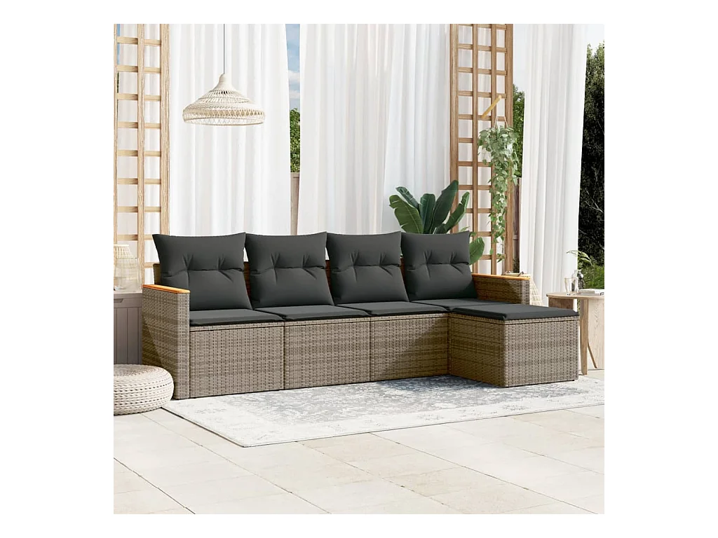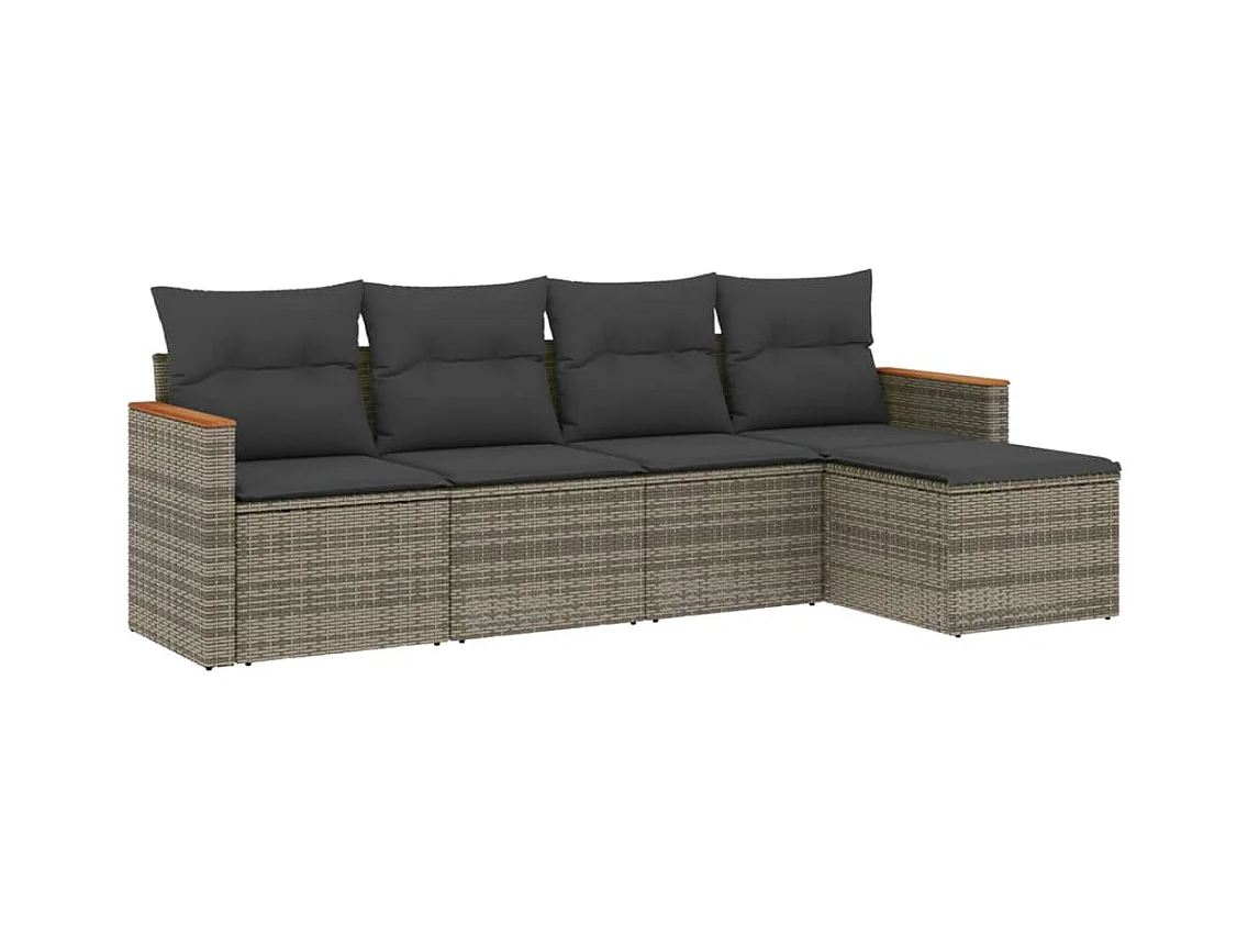 Salon de jardin 5 pcs avec coussins gris résine tressée FR72212