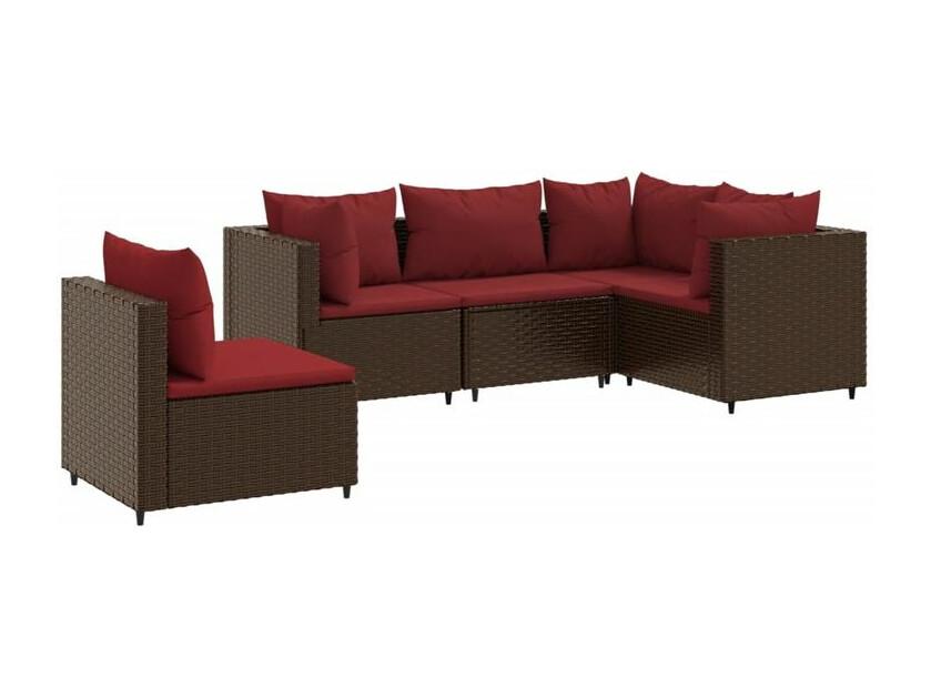 Salon de jardin 5 pcs avec coussins Marron Résine tressée