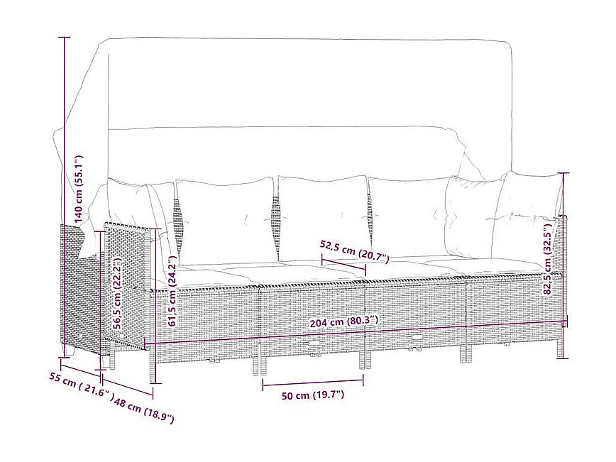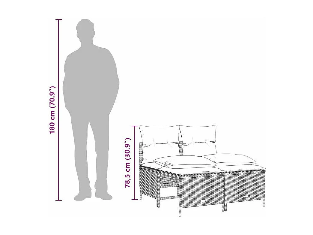 Salon de jardin 5 pcs avec coussins noir résine tressée