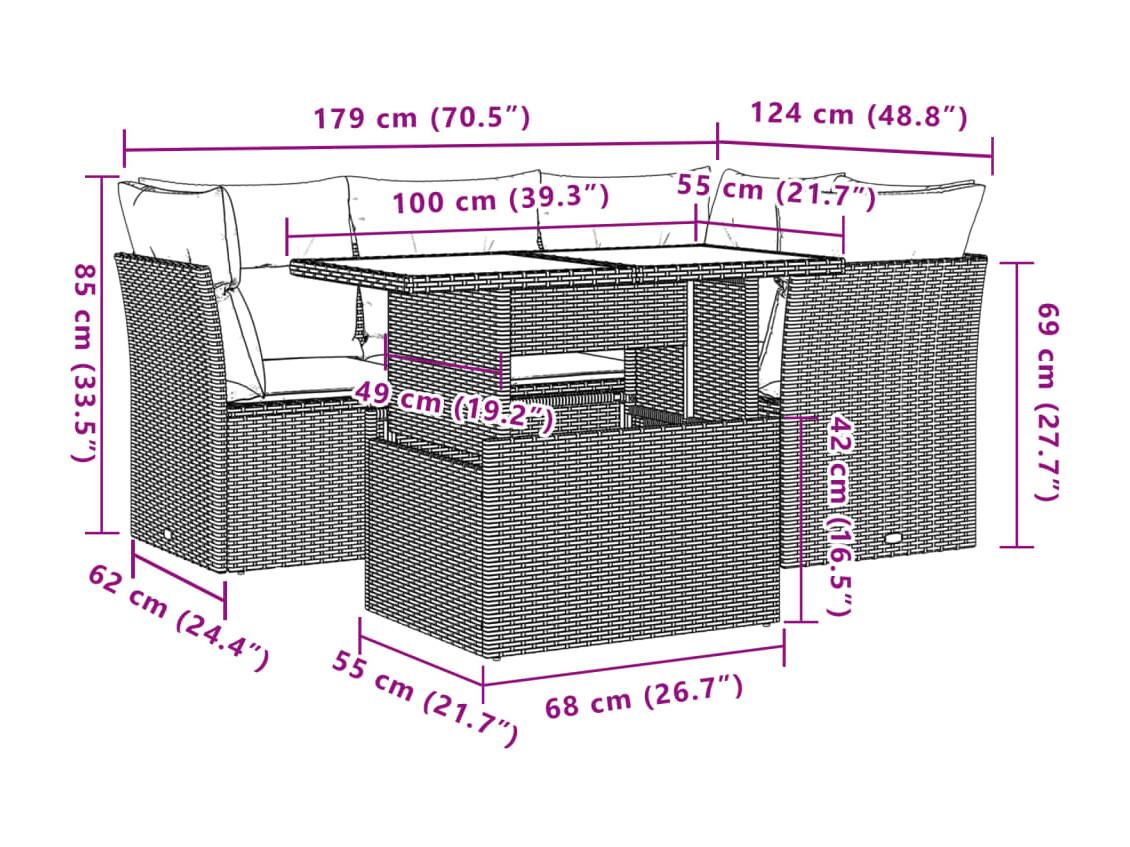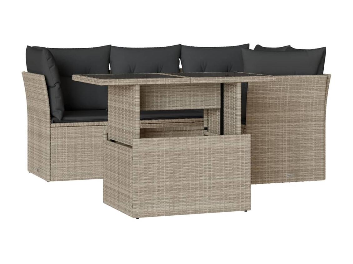 Salon de jardin 5 pièces avec coussins gris clair résine tressée