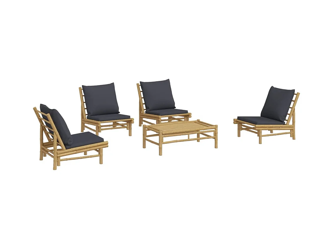 Salon de jardin 5 pièces avec coussins gris foncé bambou