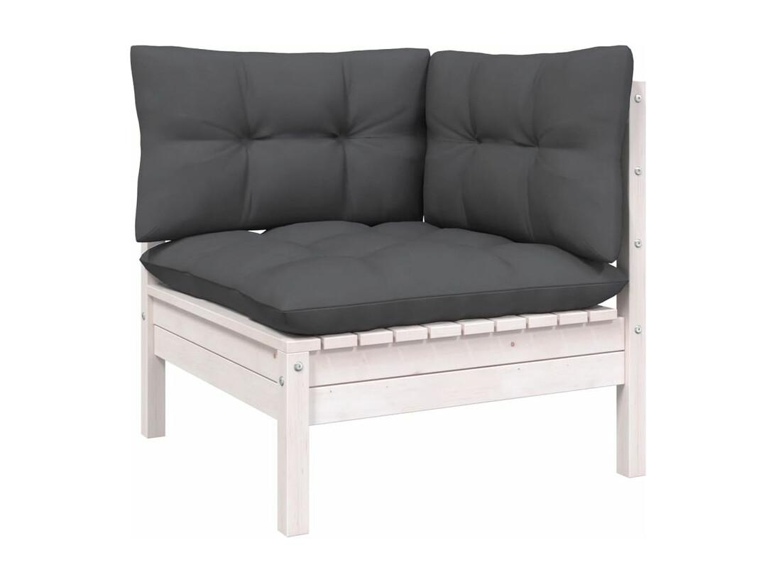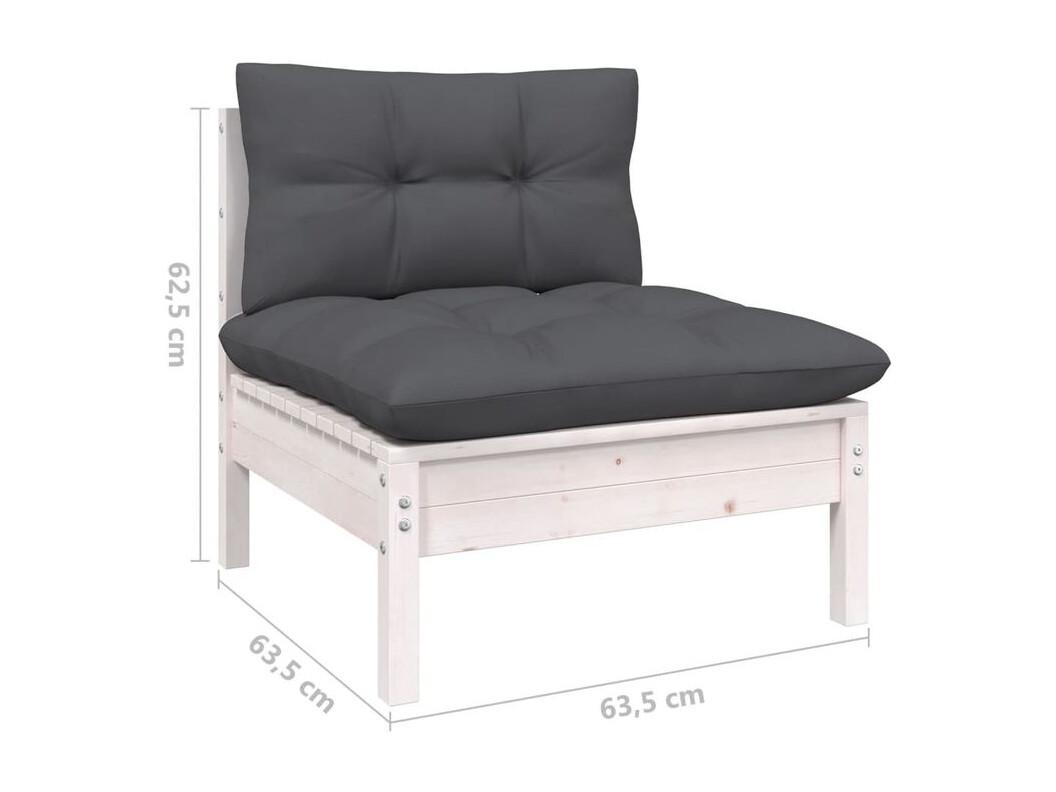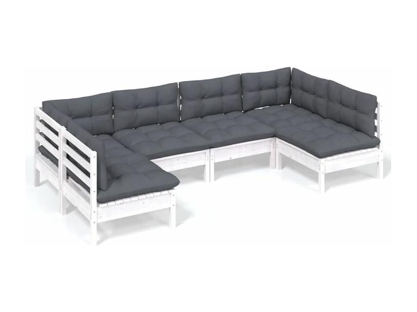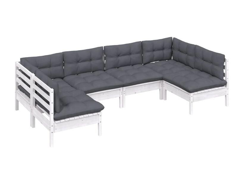 Salon de jardin 6 pcs avec coussins blanc bois de pin solide