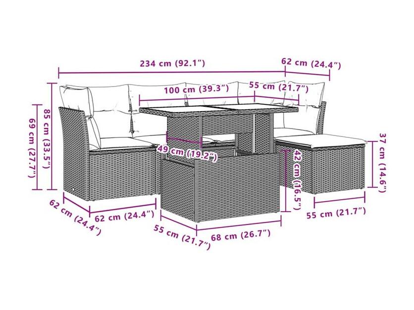 Salon de jardin 6 pcs avec coussins gris clair résine tressée