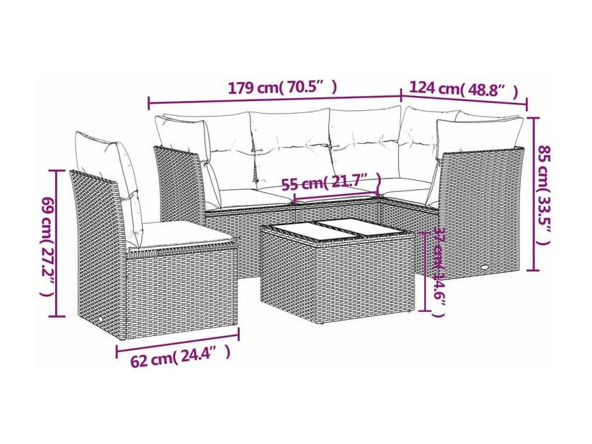 Salon de jardin 6 pcs avec coussins gris clair résine tressée