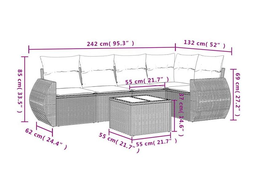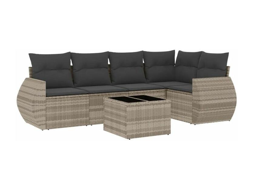 Salon de jardin 6 pcs avec coussins gris clair résine tressée