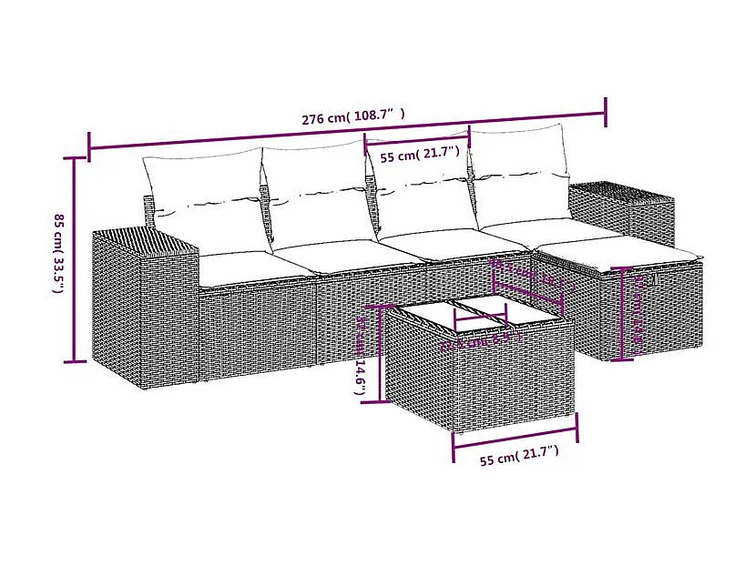 Salon de jardin 6 pcs avec coussins gris clair résine tressée