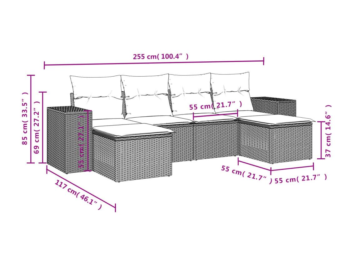 Salon de jardin 6 pcs avec coussins gris résine tressée