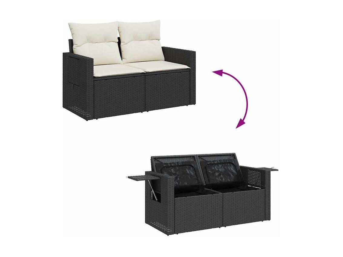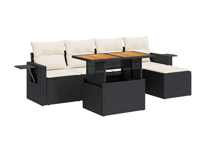 Salon de jardin 6 pcs avec coussins noir résine tressée