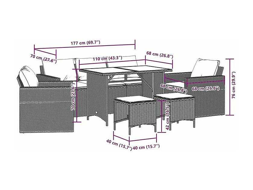 Salon de jardin 6 pcs avec coussins noir résine tressée