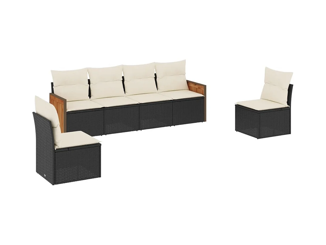 Salon de jardin 6 pcs avec coussins noir résine tressée FR77744
