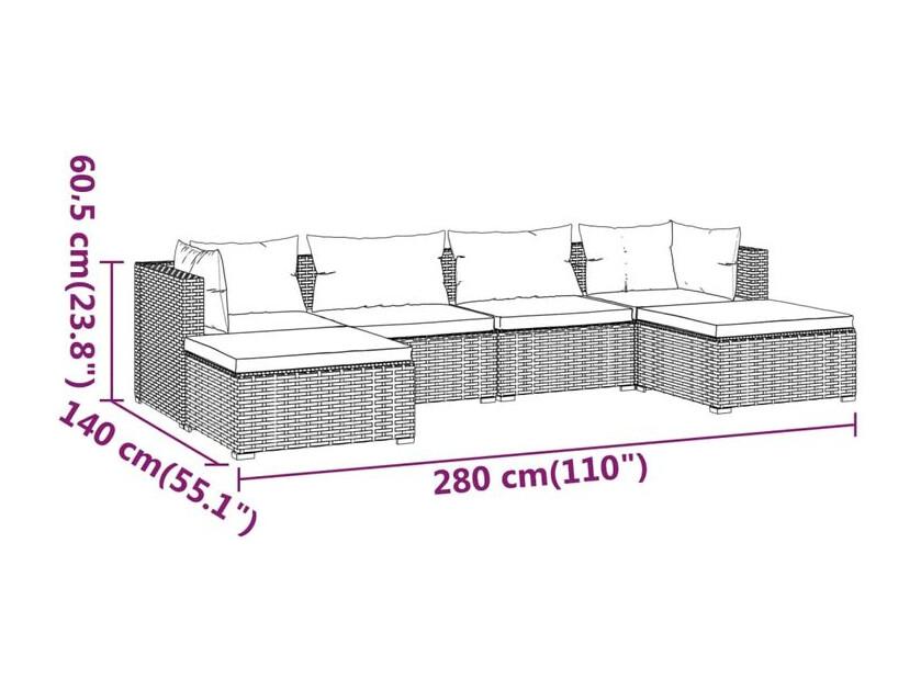Salon de jardin 6 pcs avec coussins Résine tressée Marron