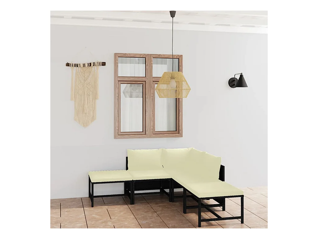 Salon de jardin 6 pcs avec coussins Résine tressée Noir BE95633
