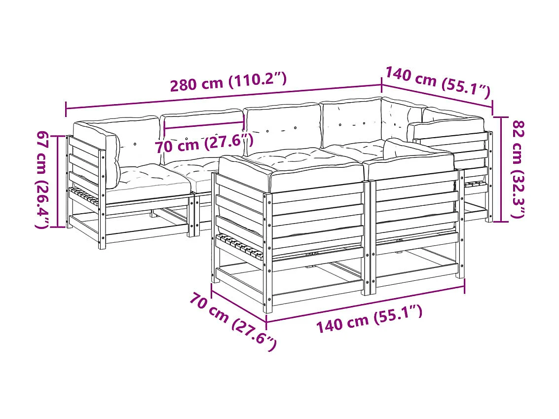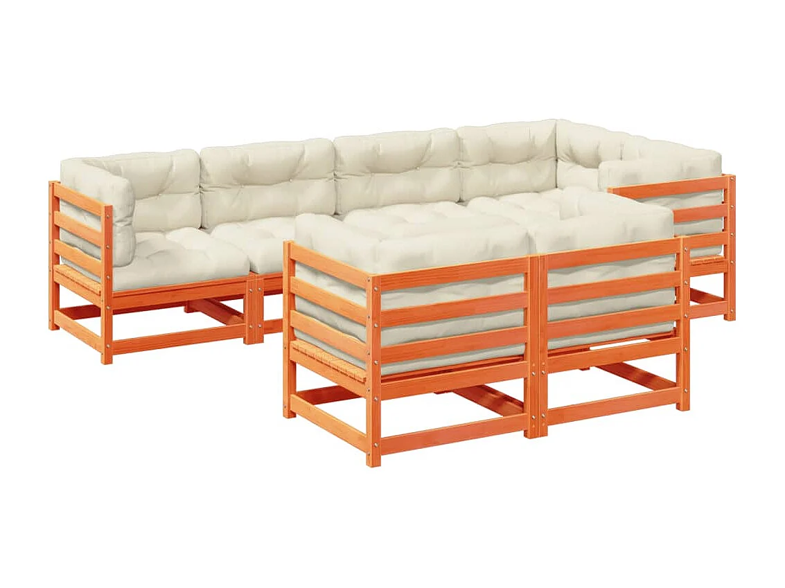 Salon de jardin 7 pcs avec coussins cire marron bois pin massif