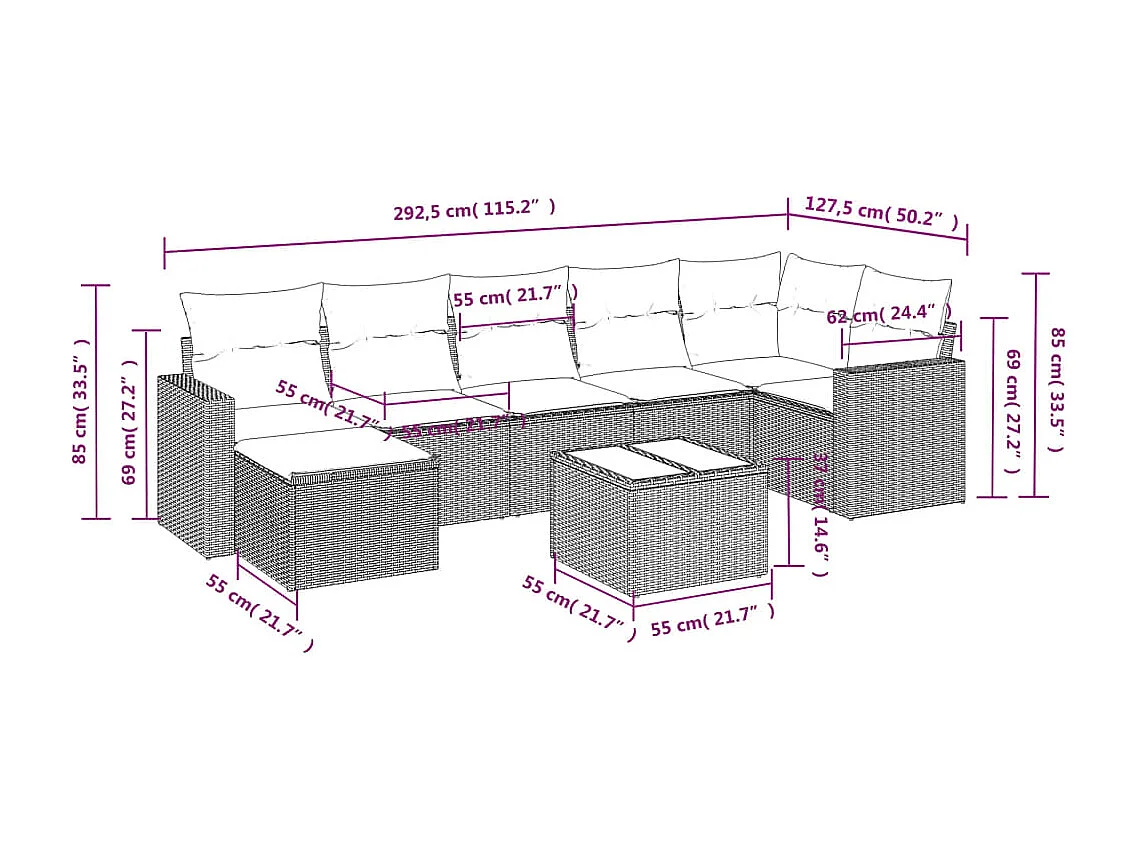 Salon de jardin 8 pcs avec coussins gris résine tressée