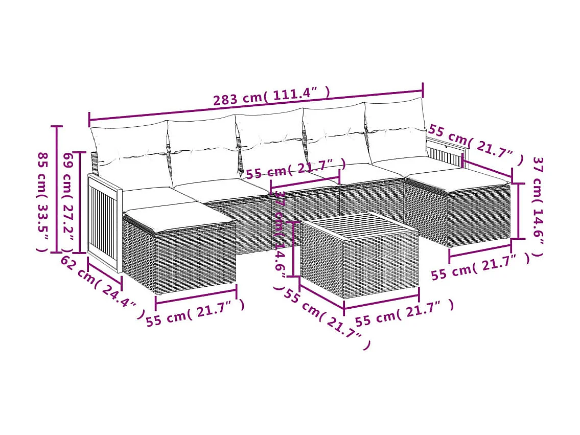 Salon de jardin 8 pcs avec coussins gris résine tressée