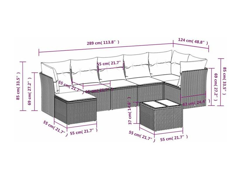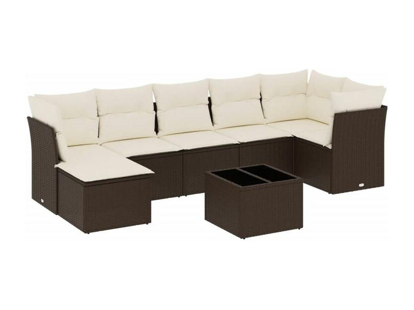 Salon de jardin 8 pcs avec coussins marron résine tressée