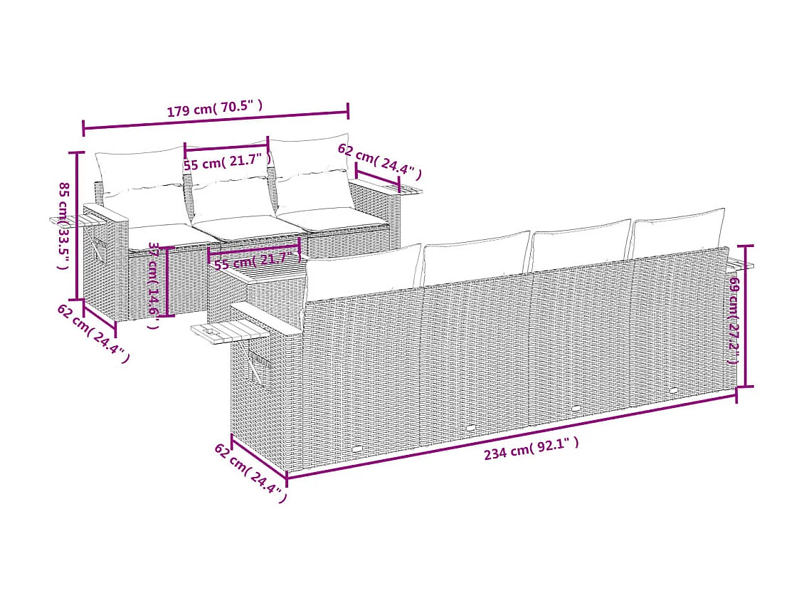 Salon de jardin 8 pcs avec coussins noir résine tressée