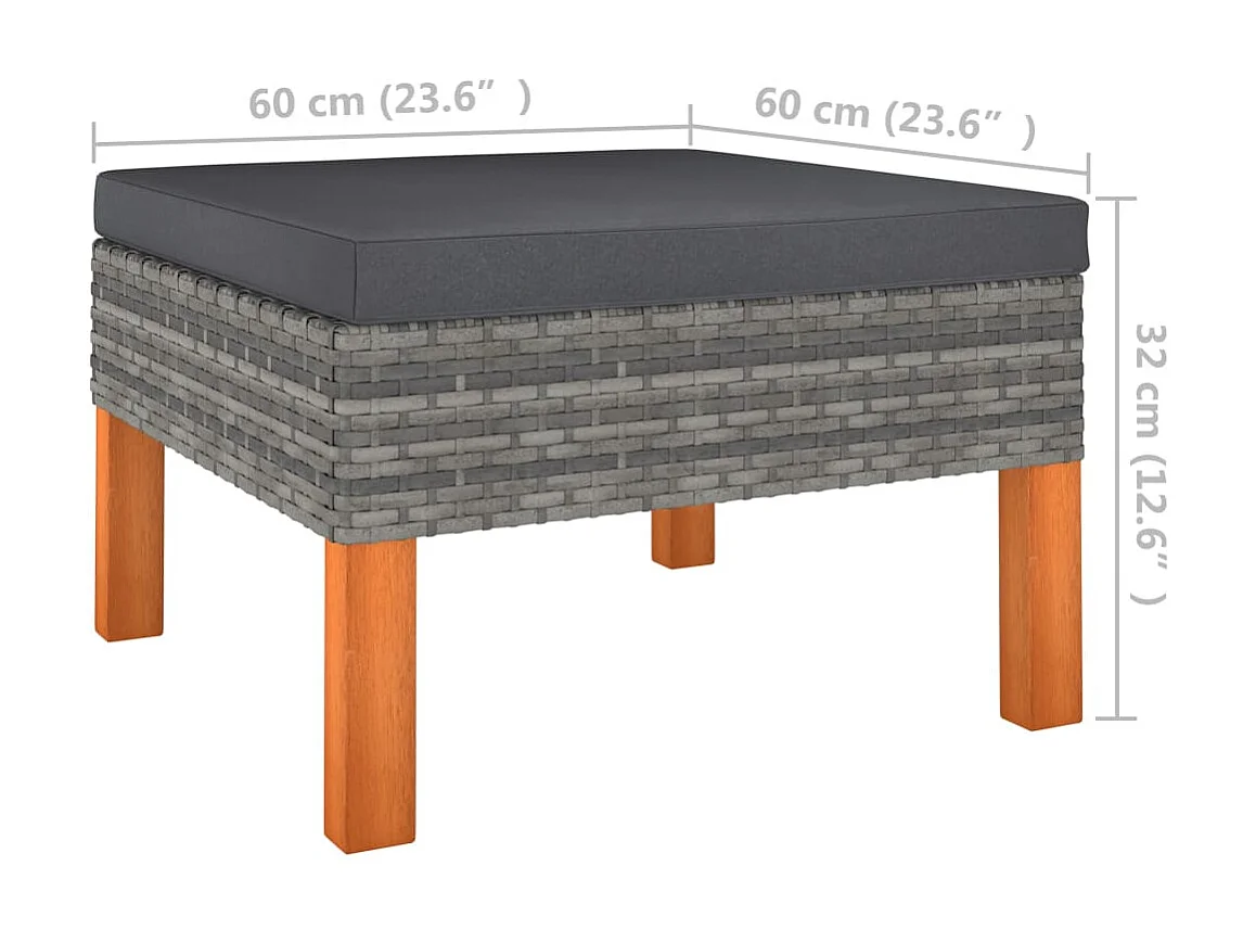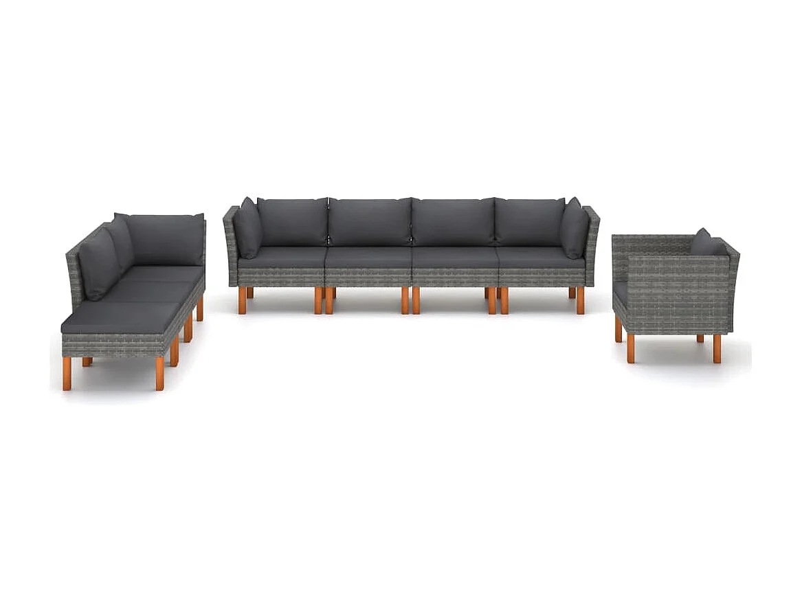 Salon de jardin 8 pcs Résine tressée et bois d'eucalyptus Gris