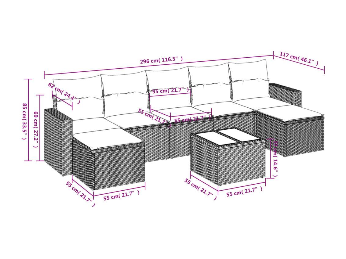 Salon de jardin 8 pièces avec coussins marron résine tressée