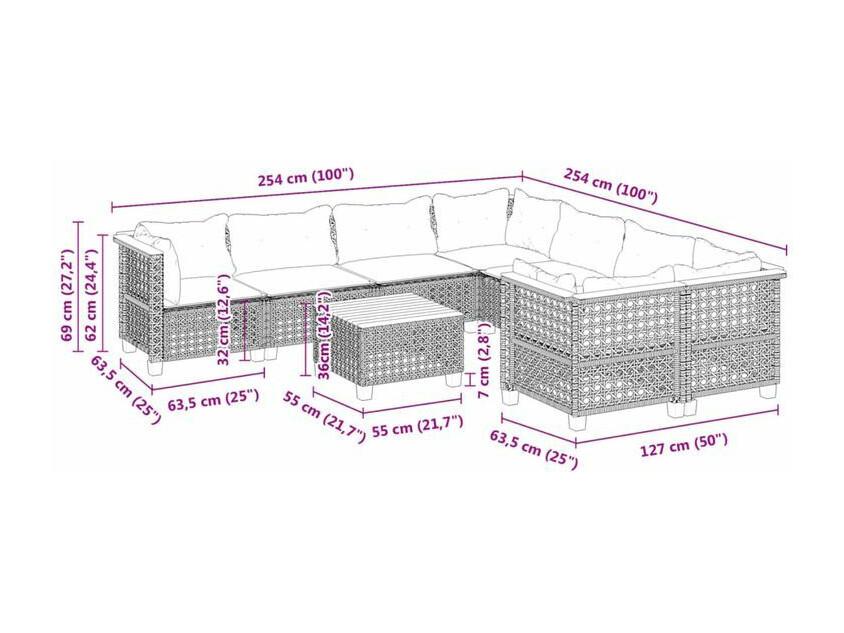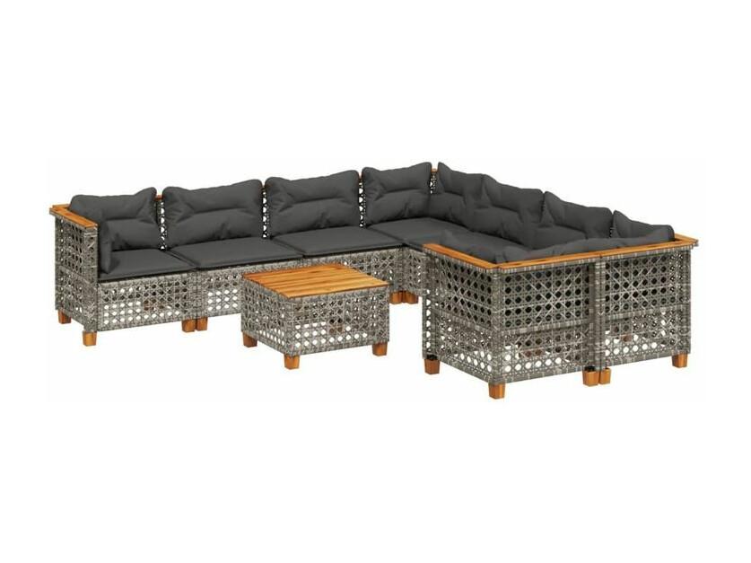 Salon de jardin 9 pcs avec coussins gris résine tressée