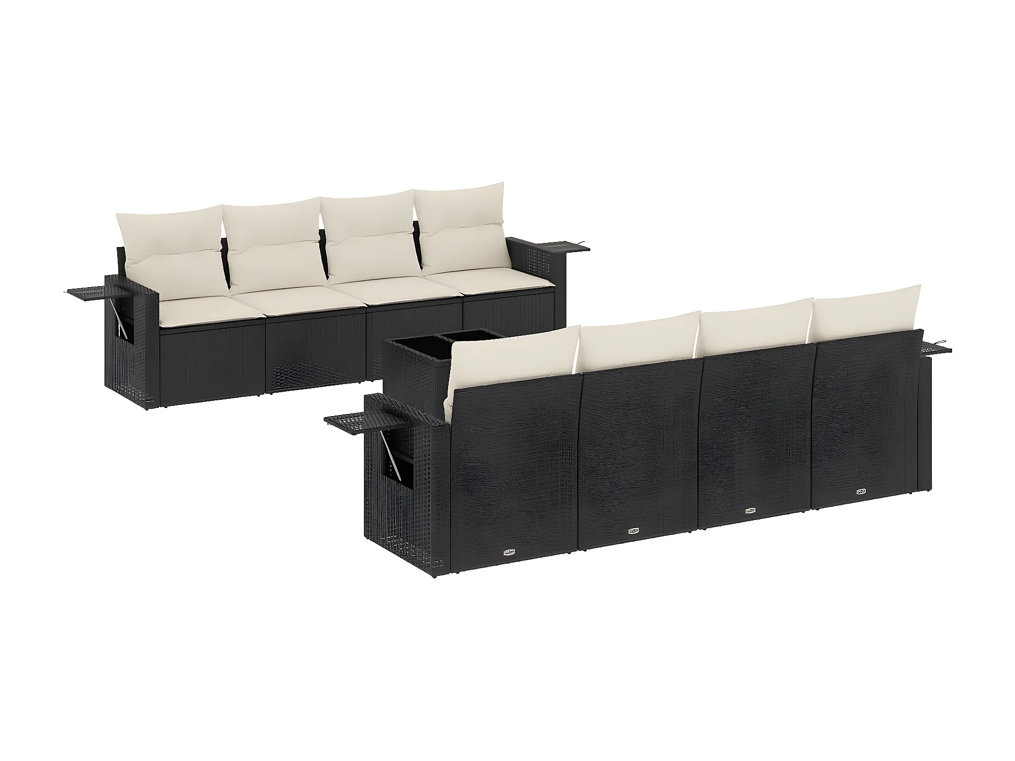 Salon de jardin 9 pcs avec coussins noir résine tressée