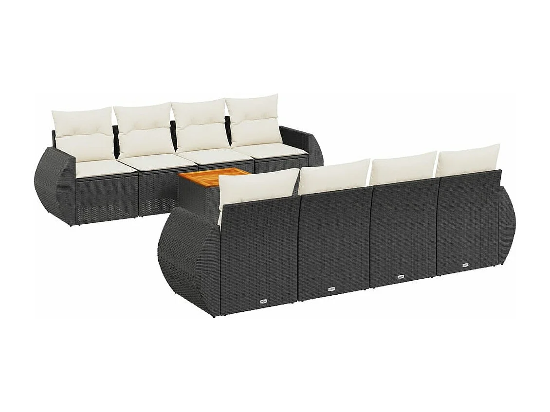Salon de jardin 9 pcs avec coussins noir résine tressée