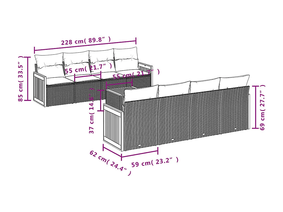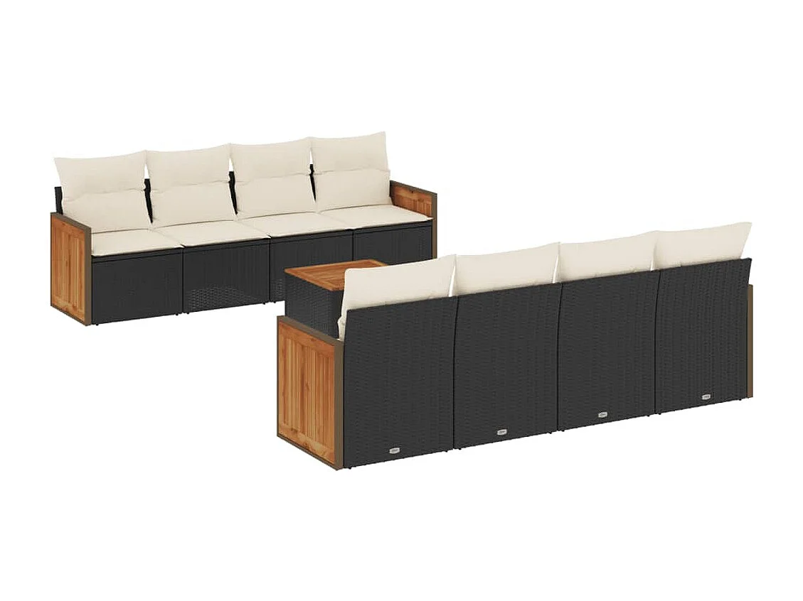Salon de jardin 9 pcs avec coussins noir résine tressée