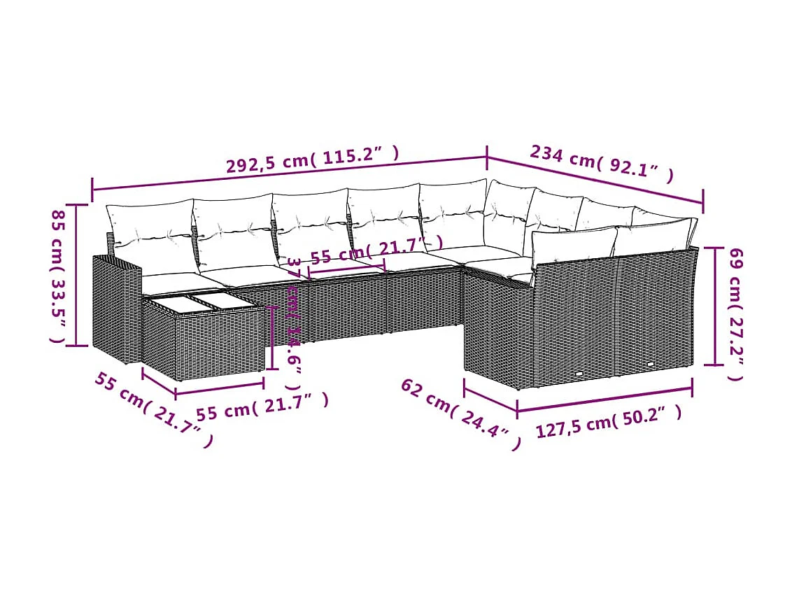 Salon de jardin avec coussins 10 pcs gris clair résine tressée