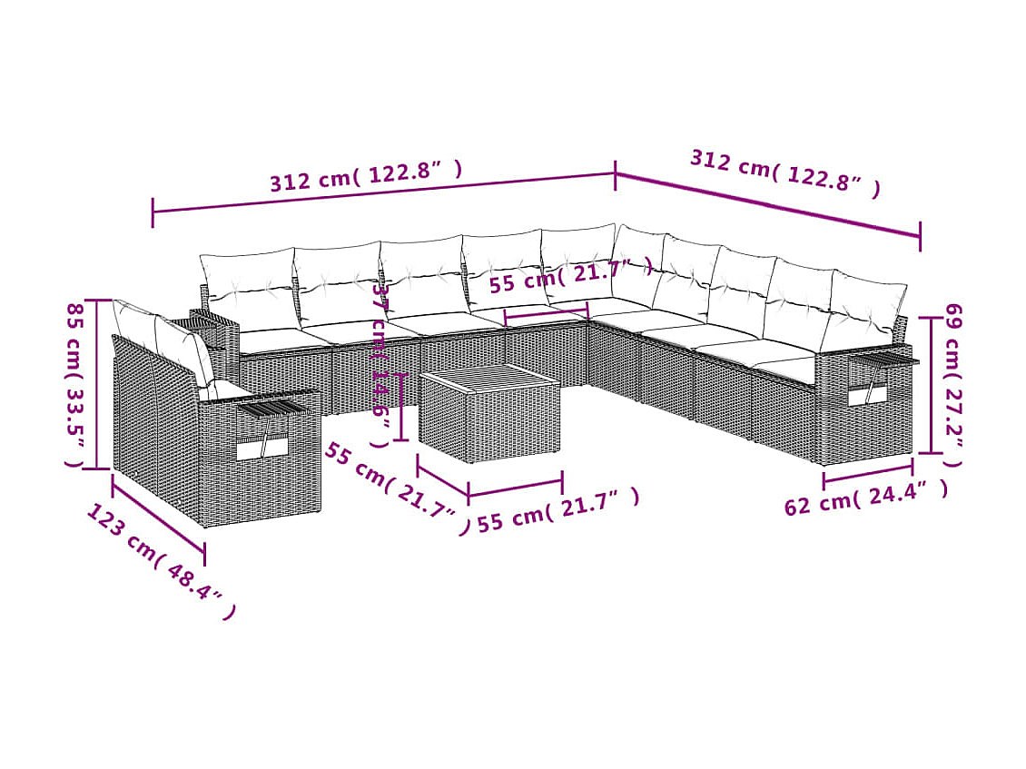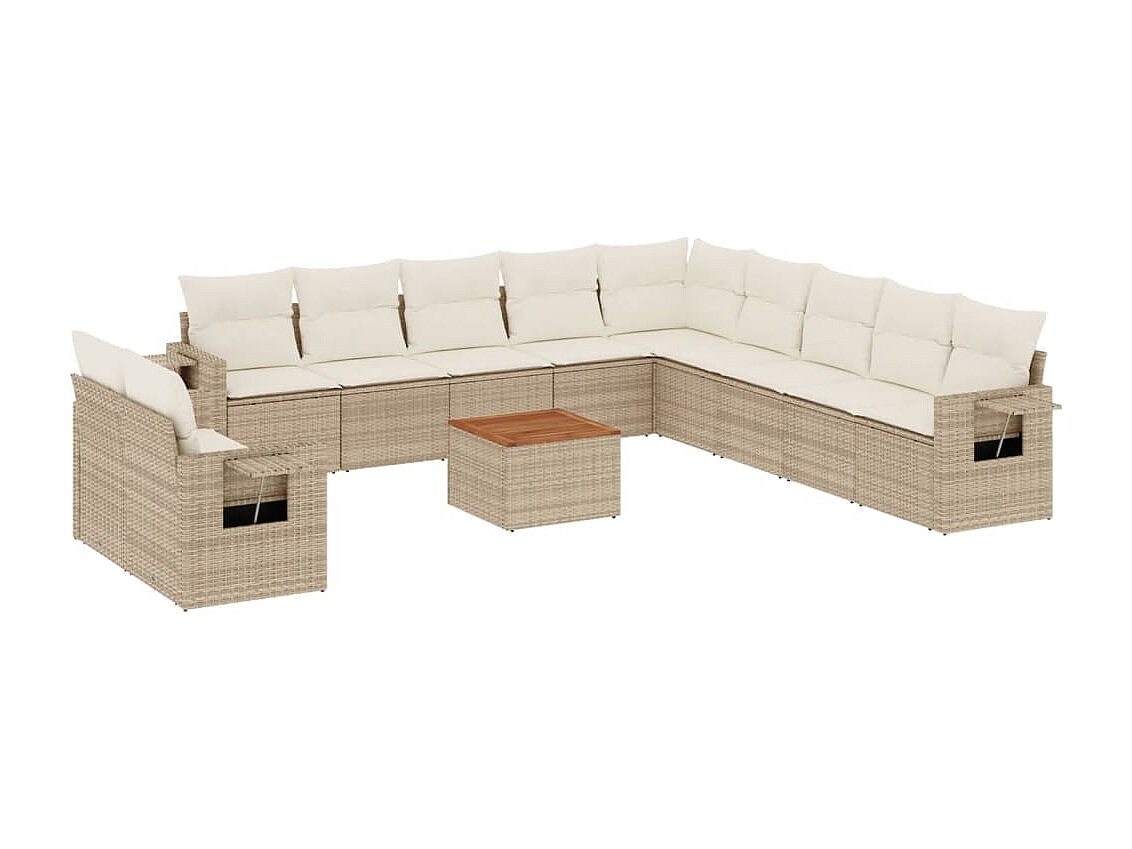 Salon de jardin avec coussins 12 pcs beige résine tressée