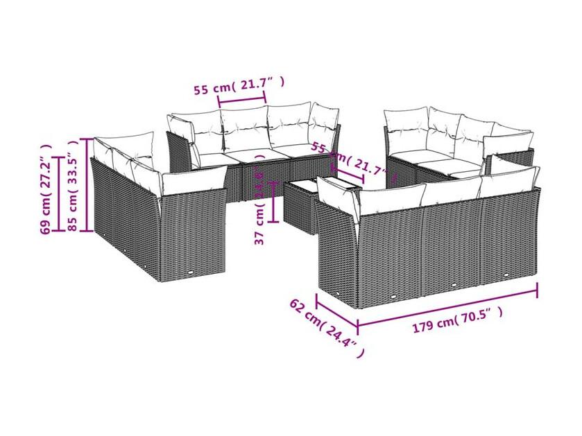 Salon de jardin avec coussins 13 pcs marron résine tressée