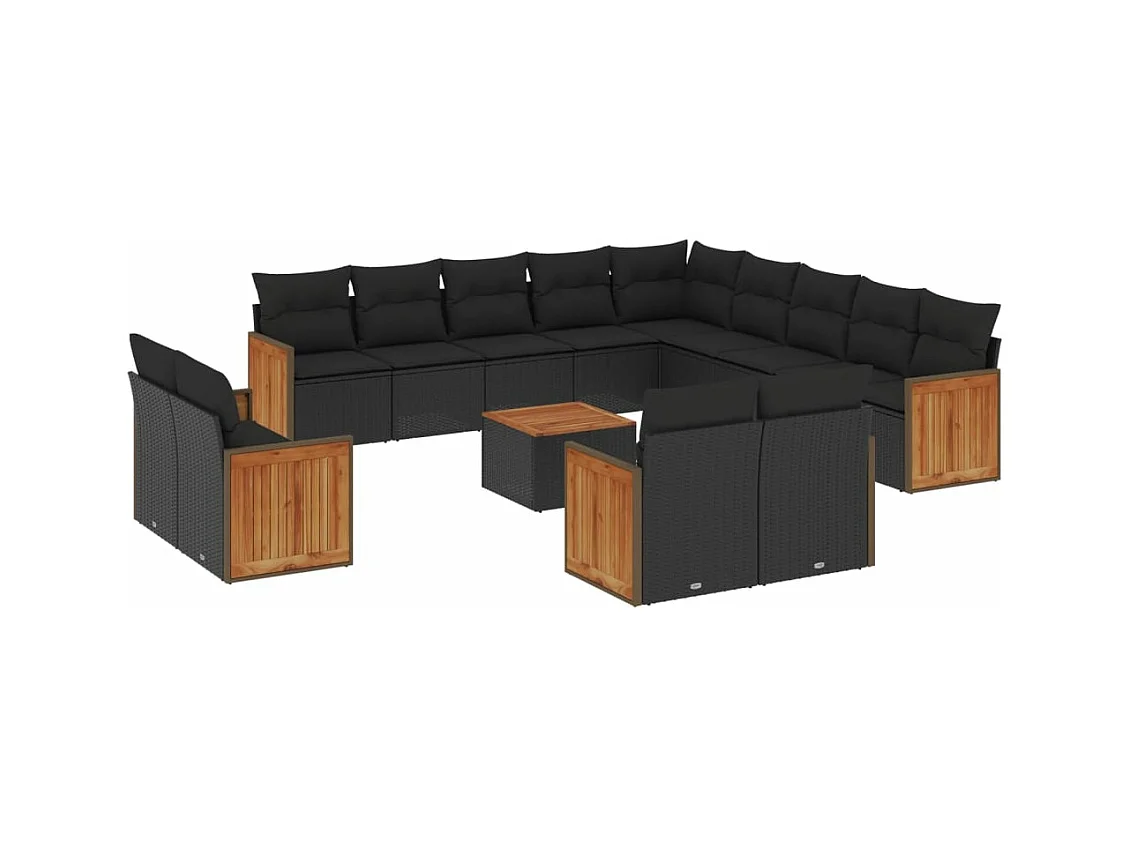 Salon de jardin avec coussins 14 pcs noir résine tressée