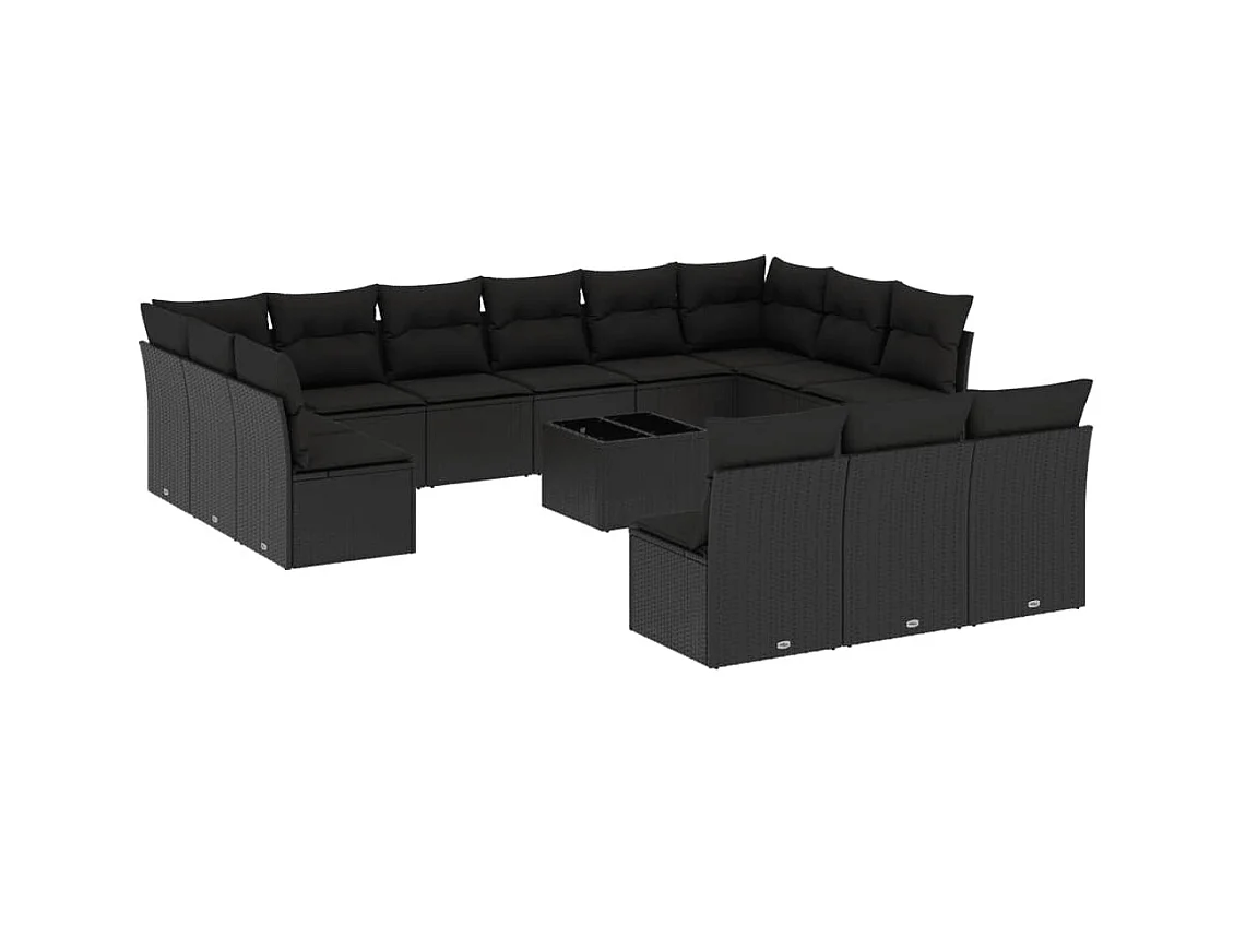 Salon de jardin avec coussins 14 pcs noir résine tressée