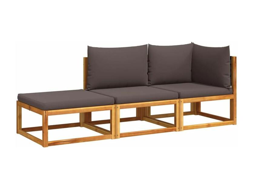 Salon de jardin avec coussins 3 pcs bois massif d'acacia