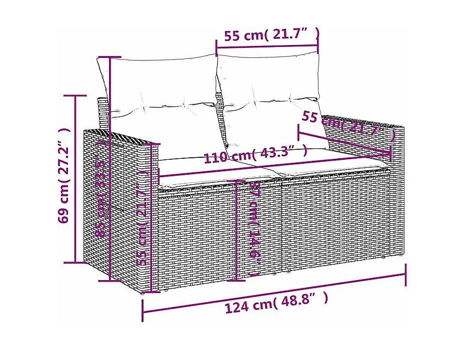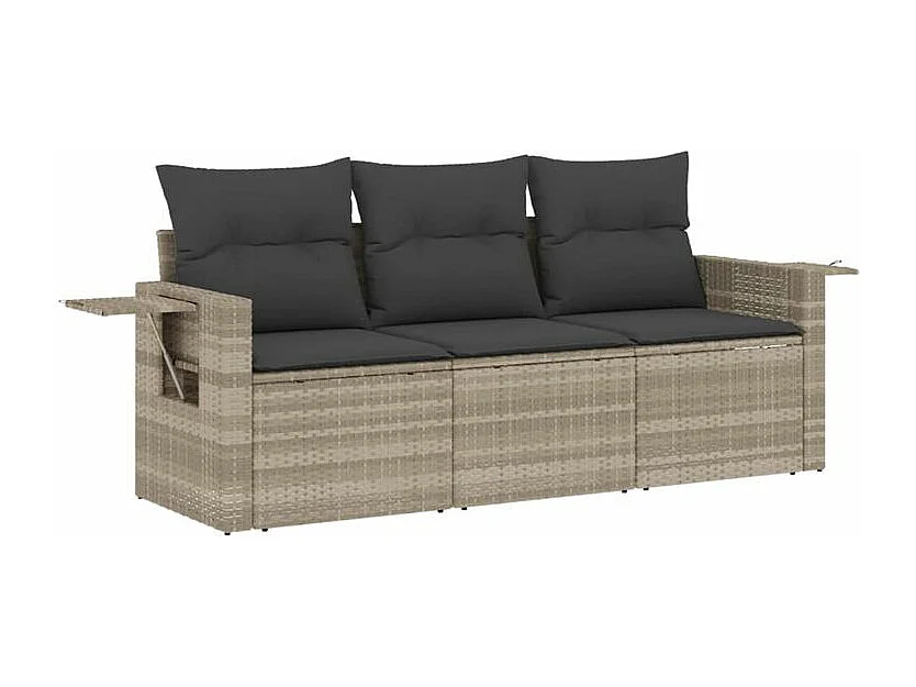 Salon de jardin avec coussins 3 pcs gris clair résine tressée