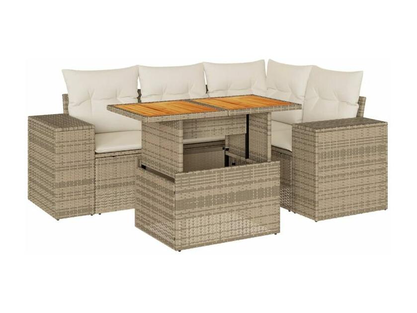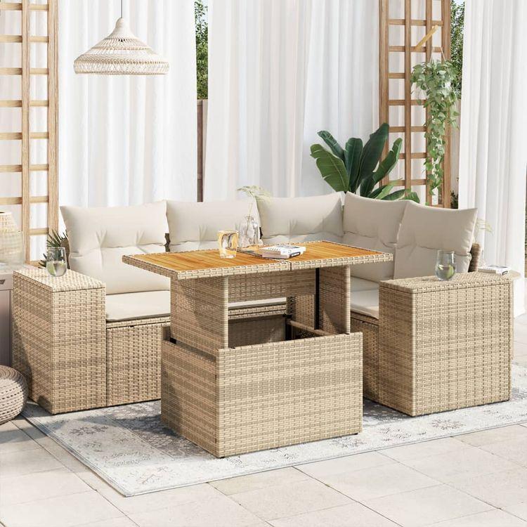 Salon de jardin avec coussins 5 pcs beige résine tressée