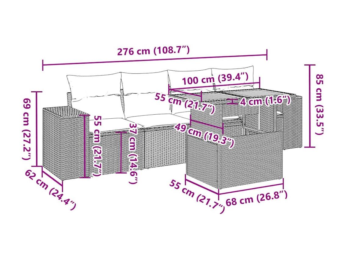 Salon de jardin avec coussins 5 pcs beige résine tressée
