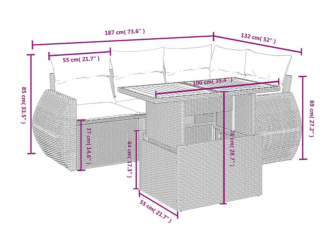 Salon de jardin avec coussins 5 pcs beige résine tressée