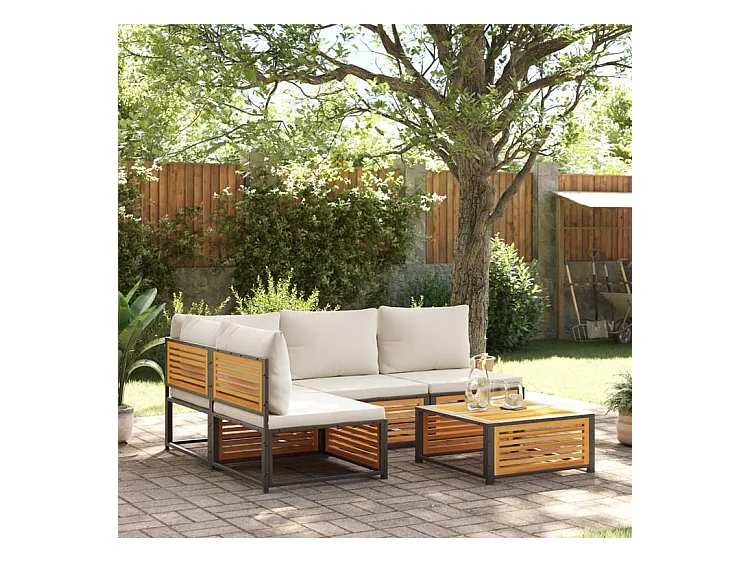 Salon de jardin avec coussins 5 pcs Bois d'acacia solide