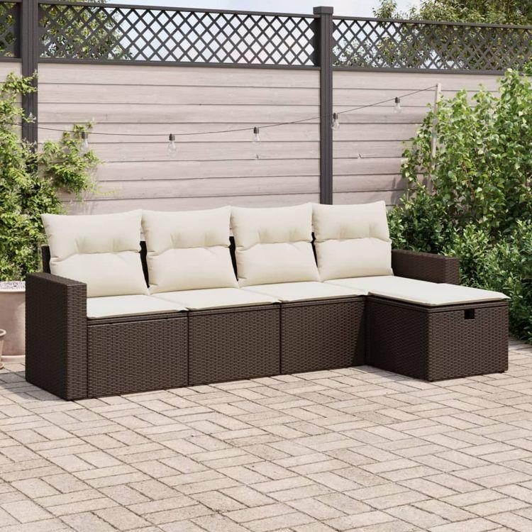 Salon de jardin avec coussins 5 pcs marron résine tressée