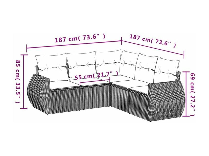 Salon de jardin avec coussins 5 pcs marron résine tressée