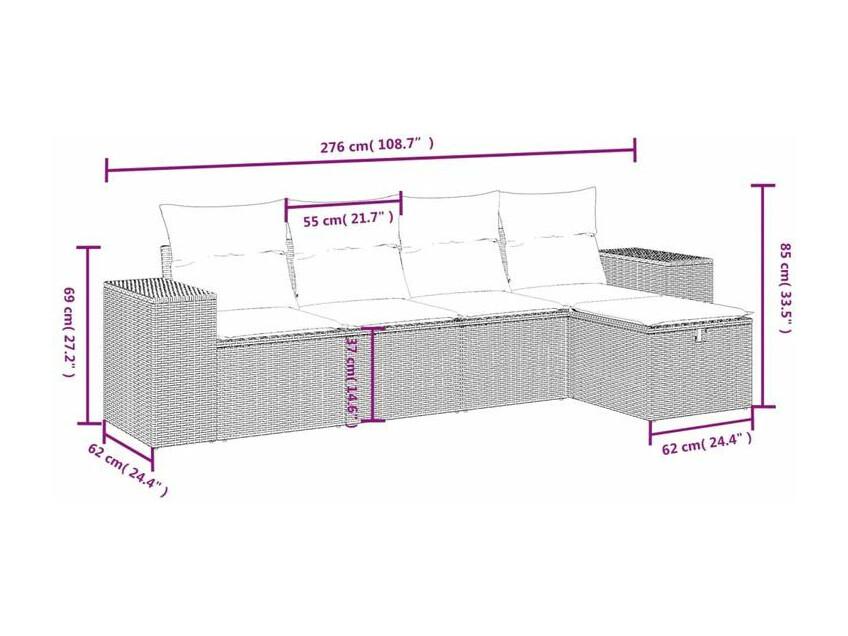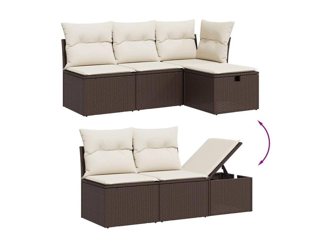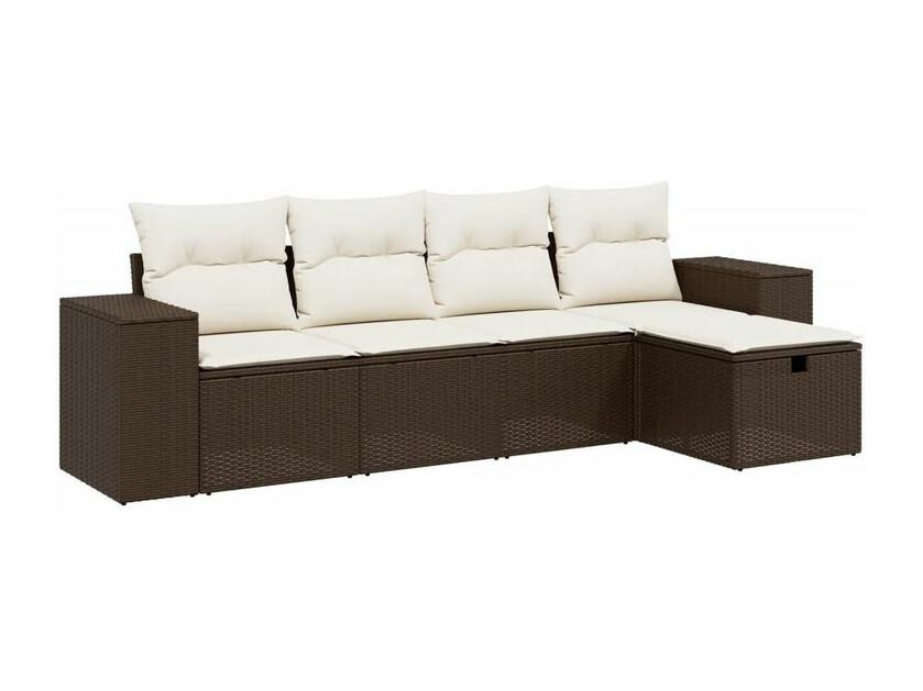 Salon de jardin avec coussins 5 pcs marron résine tressée