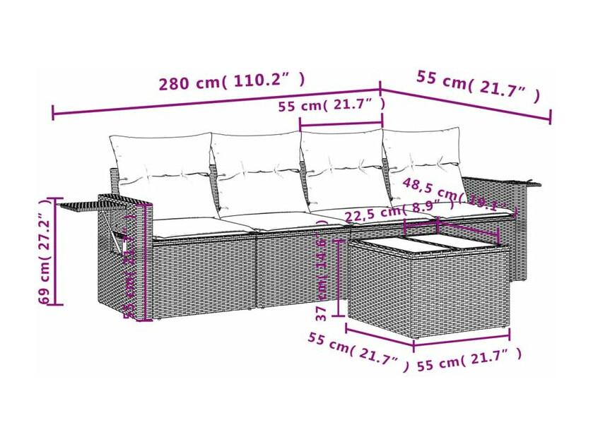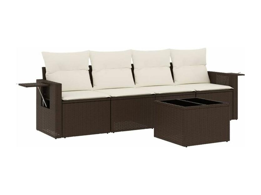 Salon de jardin avec coussins 5 pcs marron résine tressée