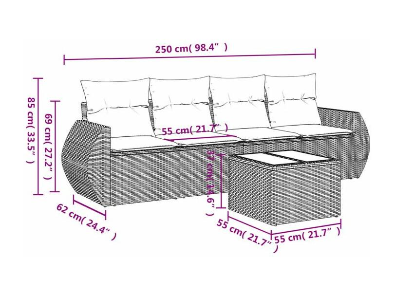 Salon de jardin avec coussins 5 pcs marron résine tressée