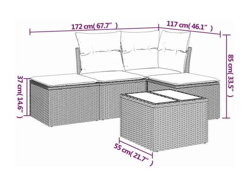 Salon de jardin avec coussins 5 pcs marron résine tressée
