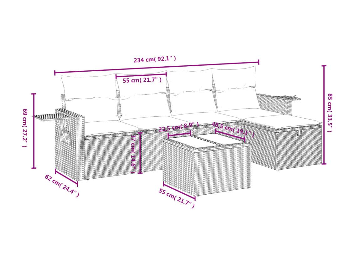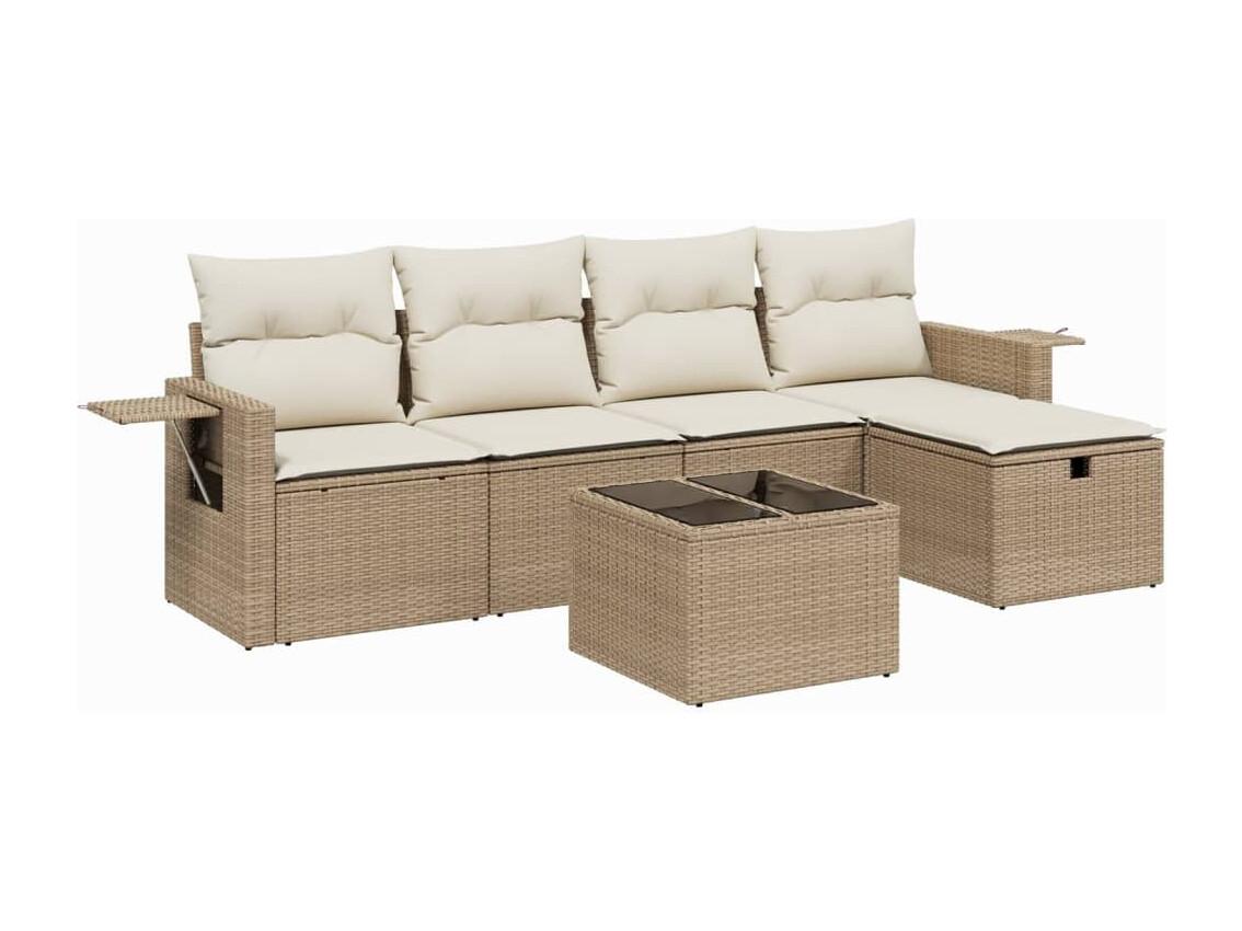 Salon de jardin avec coussins 6 pcs beige résine tressée