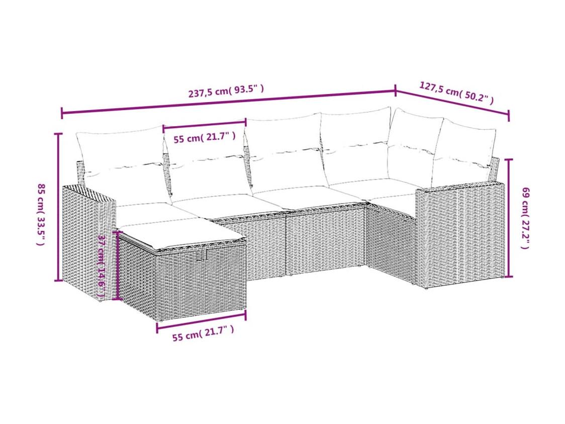 Salon de jardin avec coussins 6 pcs beige résine tressée
