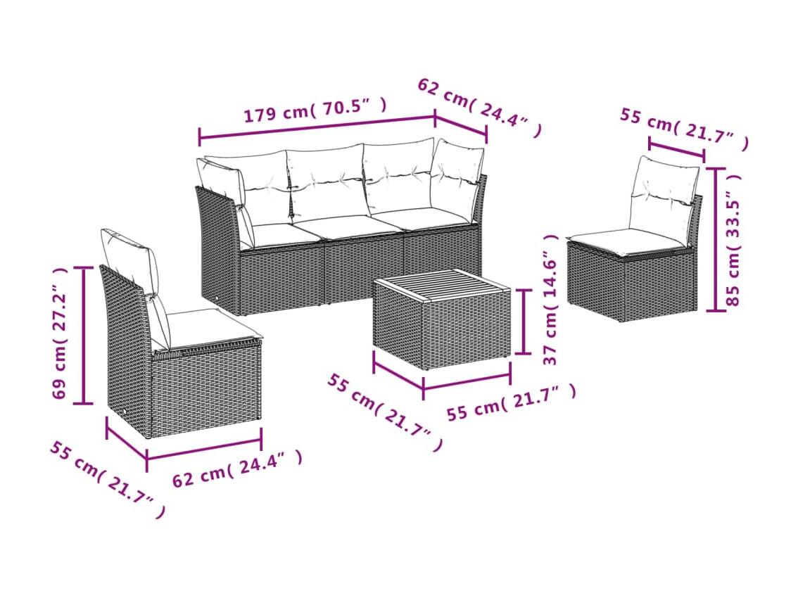 Salon de jardin avec coussins 6 pcs beige résine tressée