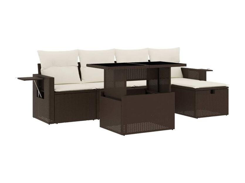 Salon de jardin avec coussins 6 pcs marron résine tressée
